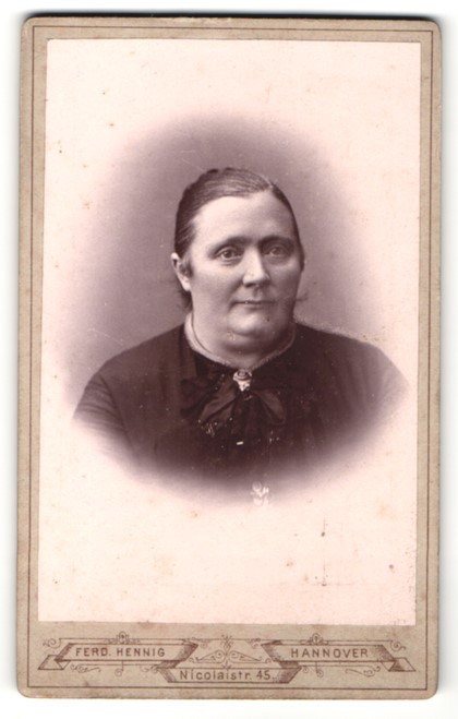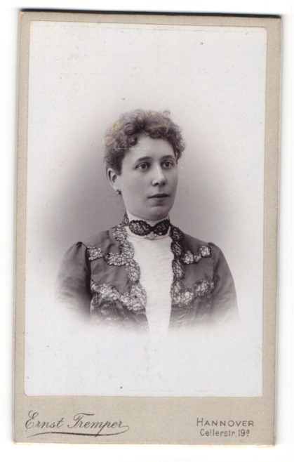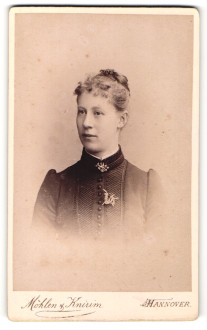 | Fotografie Ferd. Hennig, Hannover, Portrait hübsche Dame mit Brosche am Kragen