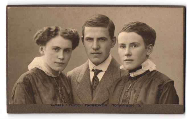 Portrait junger Herr mit zwei Schwestern |